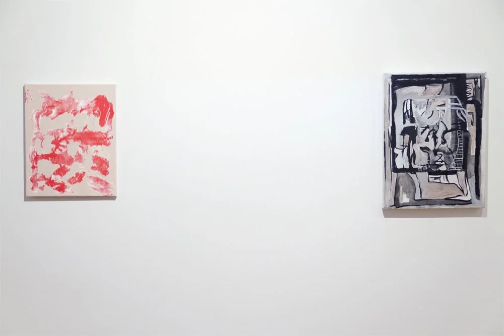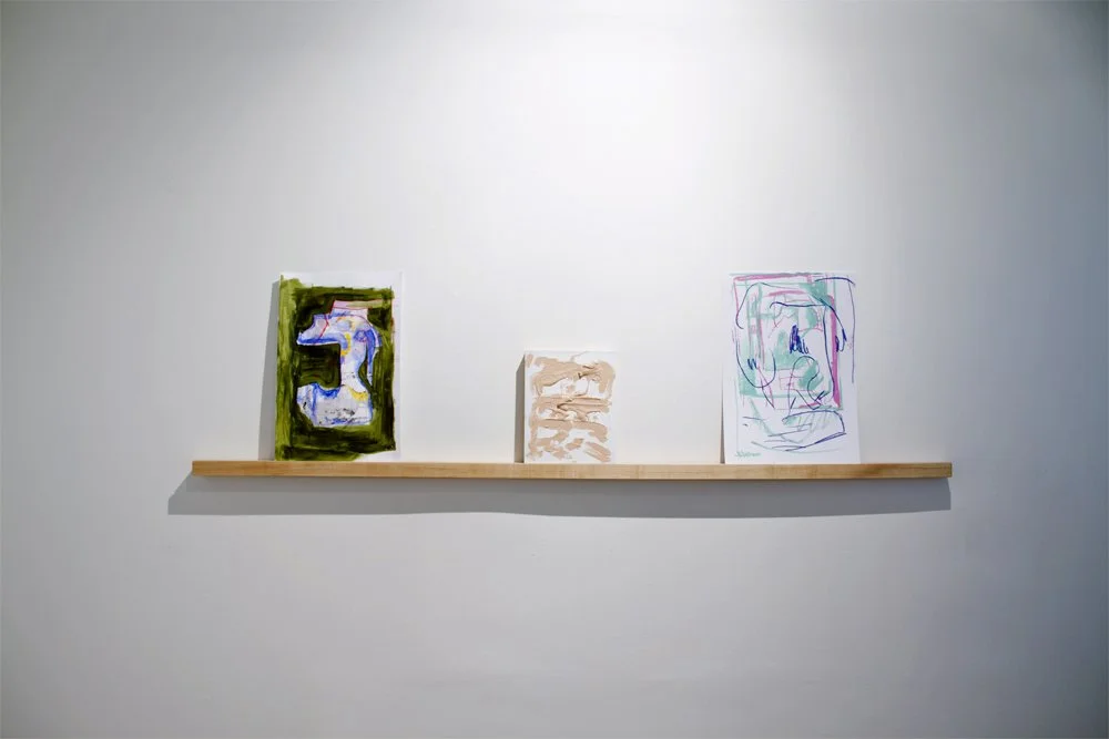Leiby’s work has been placed around the gallery to reference this important aspect of her practice. Moving through the gallery, the sight of a print that resembles a painting the viewer encountered moments earlier, establishes a relationship to the first work through a memory. An echo. Something that was uttered and returned slightly different, with a change in volume and shape.